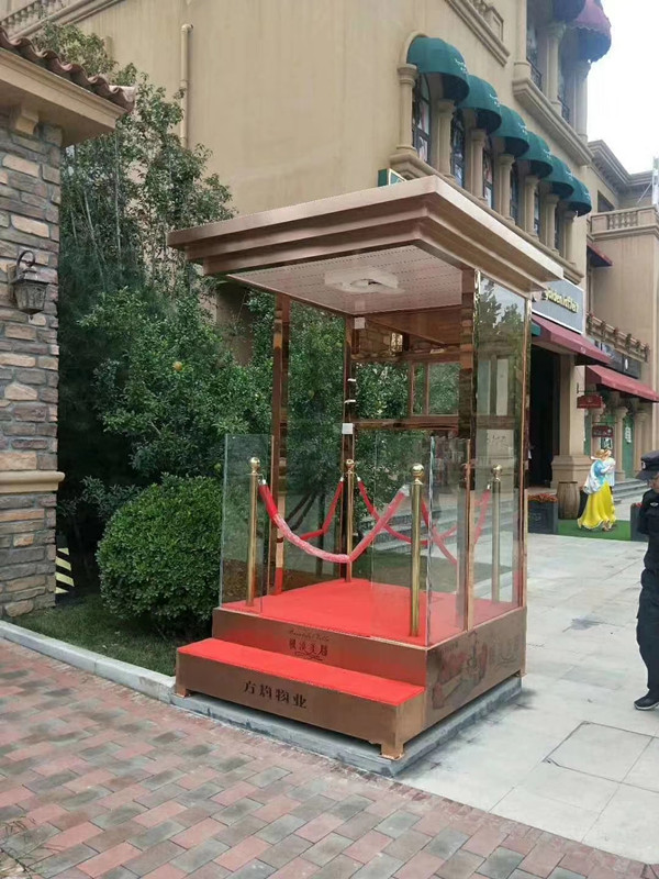 值班站臺的尺寸一般有:1.2x1.5x2.6米、1.5x2.5x2.06米、1.5x2.0x2.6米等,其余特殊尺寸可根據客戶需要來定制,材料一般有彩鋼、鋼結構、氟碳噴漆、金屬雕花板材料的,各個款式設計不同,給你帶來不同的體驗;